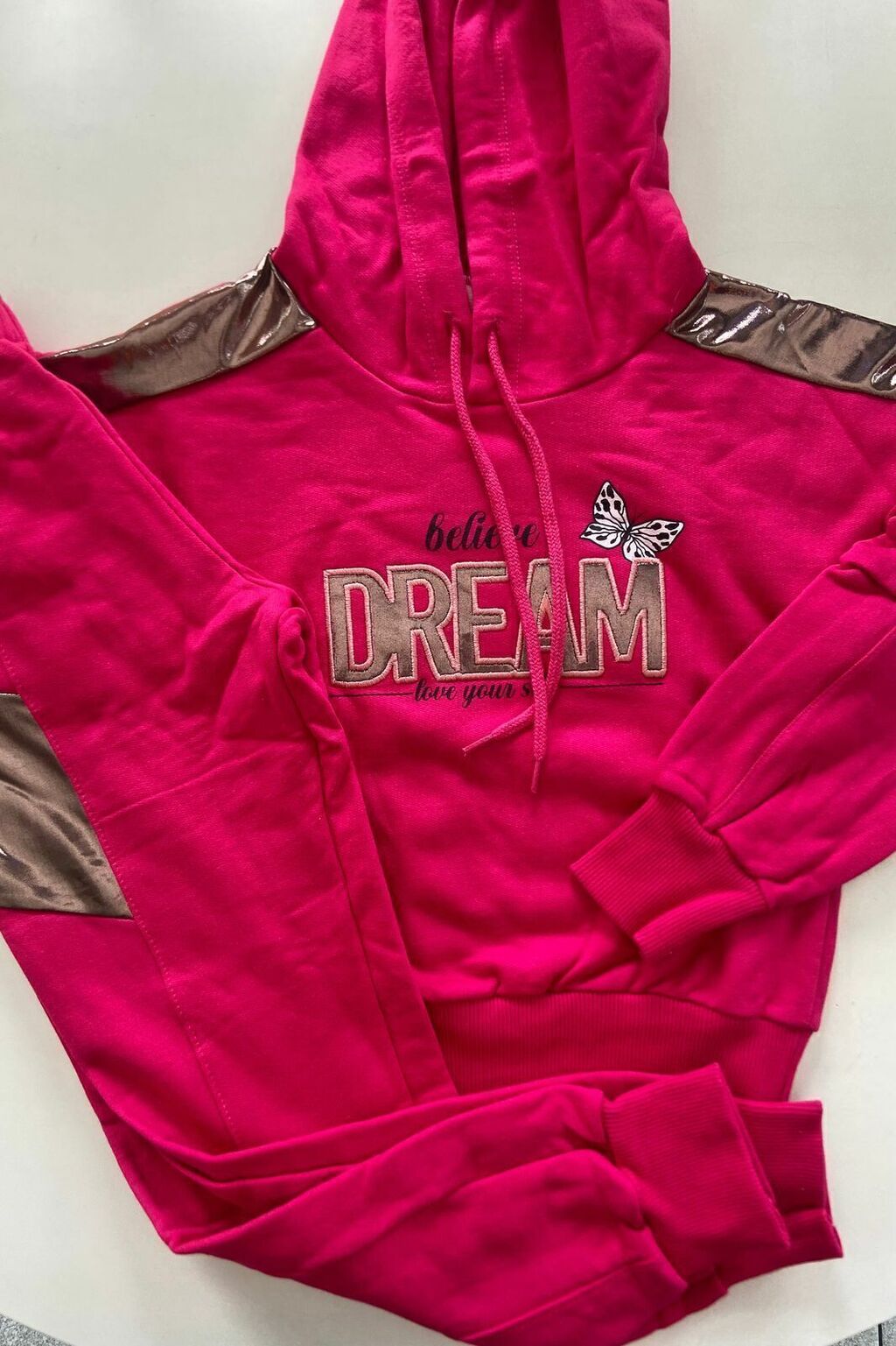 Conjunto Menina em Moletom Felpado com Capuz e Detalhe em Manta Metalizada Dream Angerô