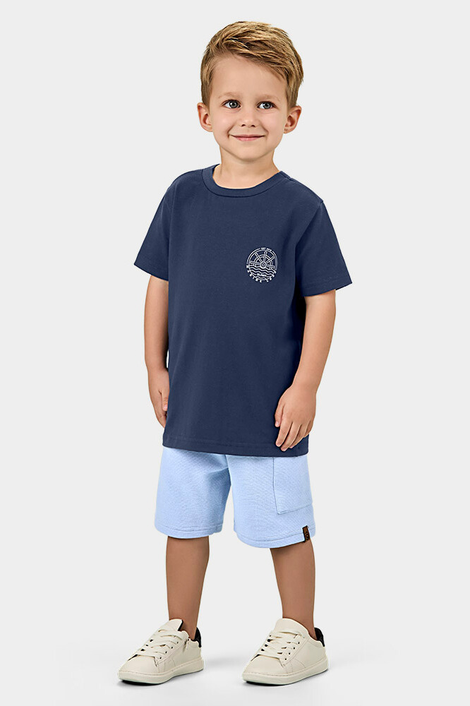 Conjunto Menino com Camiseta em Algodão e Bermuda em Jacquard Miame Marine - Glinny