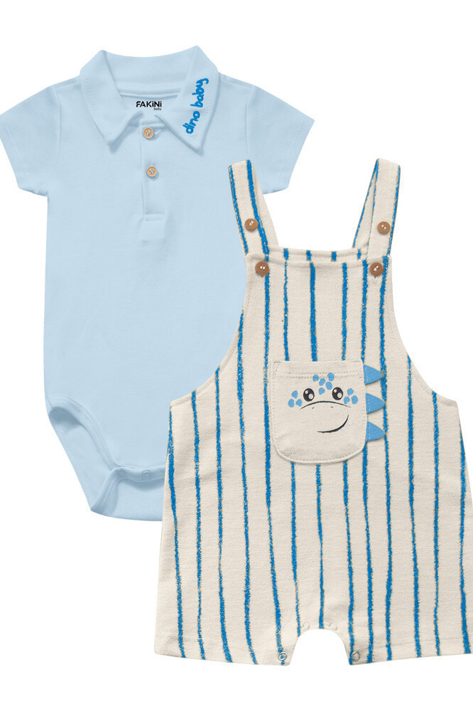 Macacão Listrado com Body Bordado Dino - Fakini